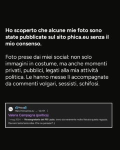 Foto prese dai miei social: non solo immagini in costume, ma anche momenti privati, pubblici, legati alla mia attività politica. Le hanno messe lì accompagnandole con commenti volgari, sessisti, schifosi.
